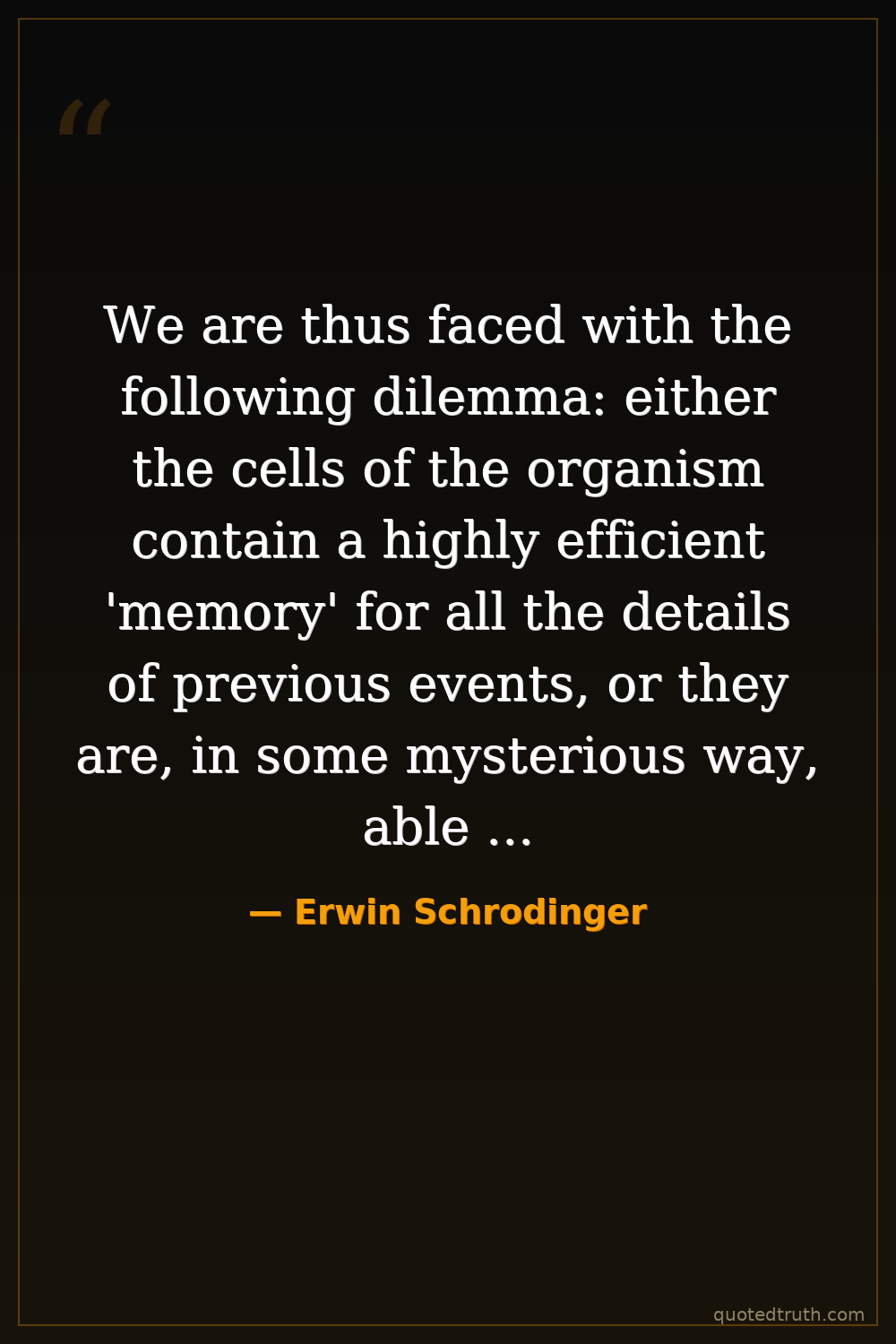 We are thus faced with the following dilemma: either the cells of the organism contain a highly efficient 'memory' for all the details of previous events, or they are, in some mysterious way, able to 'foresee' future events.
