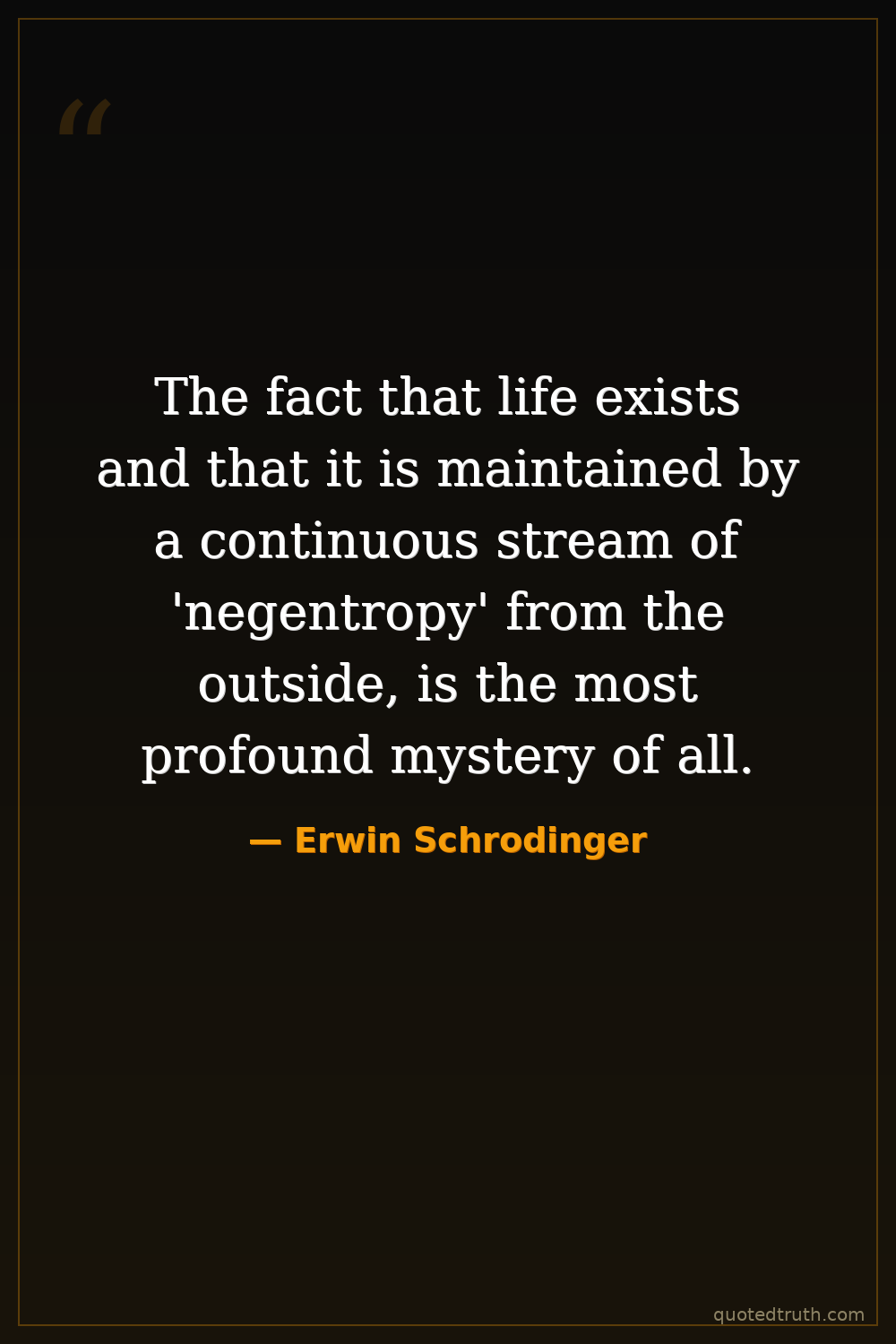 The fact that life exists and that it is maintained by a continuous stream of 'negentropy' from the outside, is the most profound mystery of all.