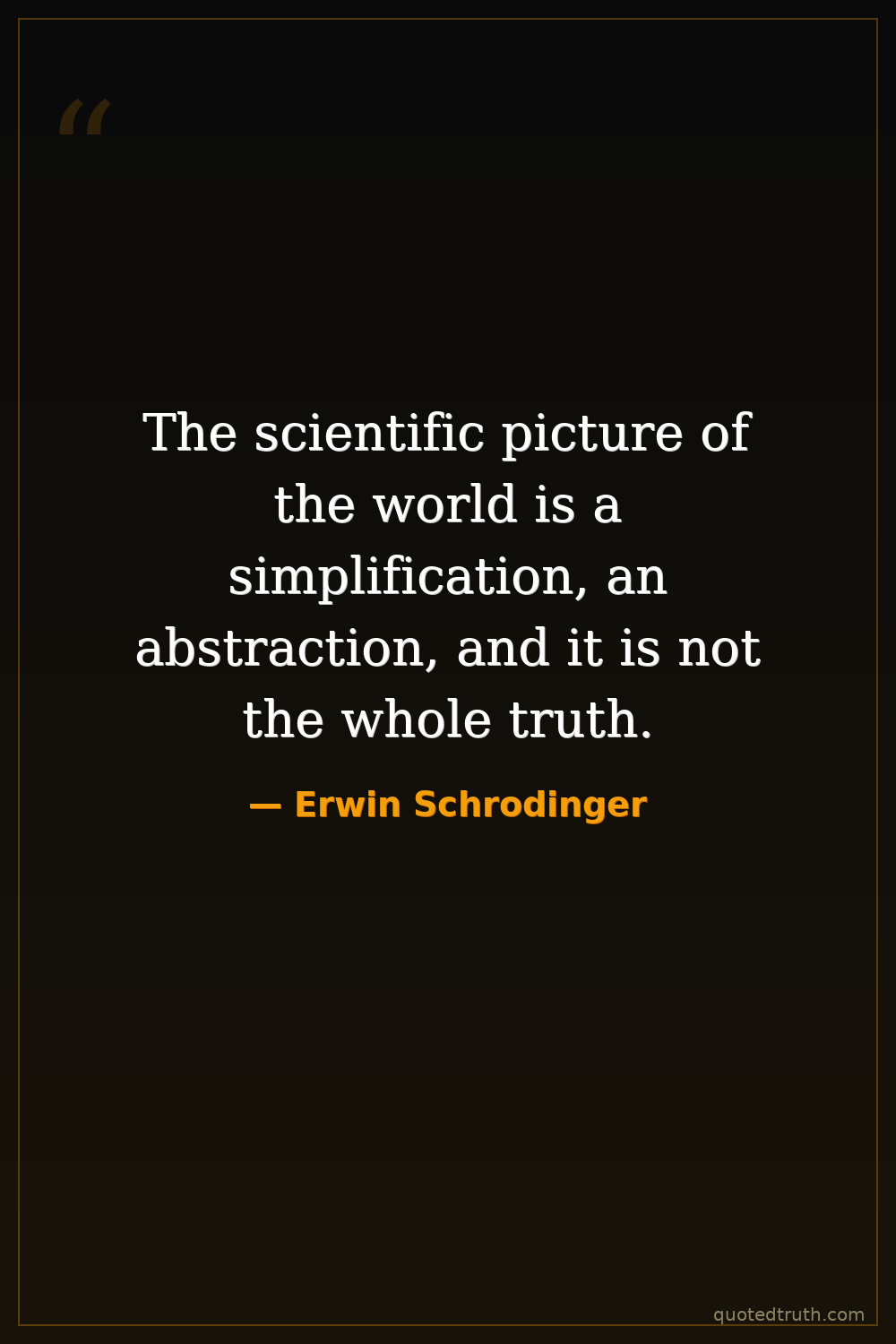 Humorous"I am very astonished that the scientific picture of the real world around me is very deficient. It gives a lot of factual information, puts all our experience in a magnificently consistent order, but …"