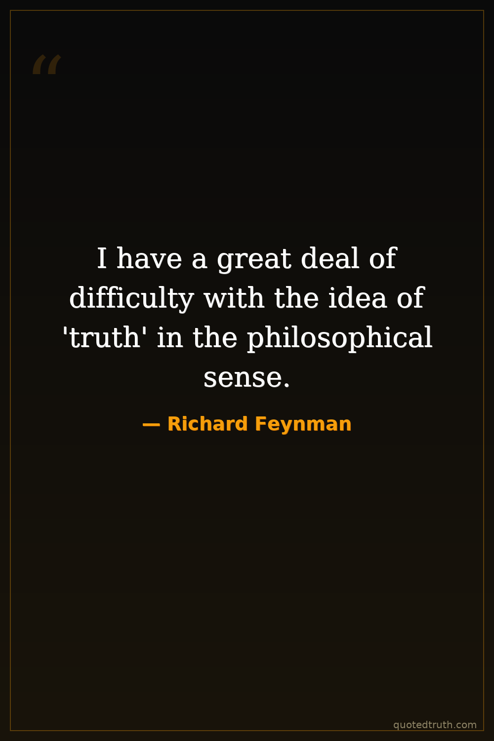 I have a great deal of difficulty with the idea of 'truth' in the philosophical sense.