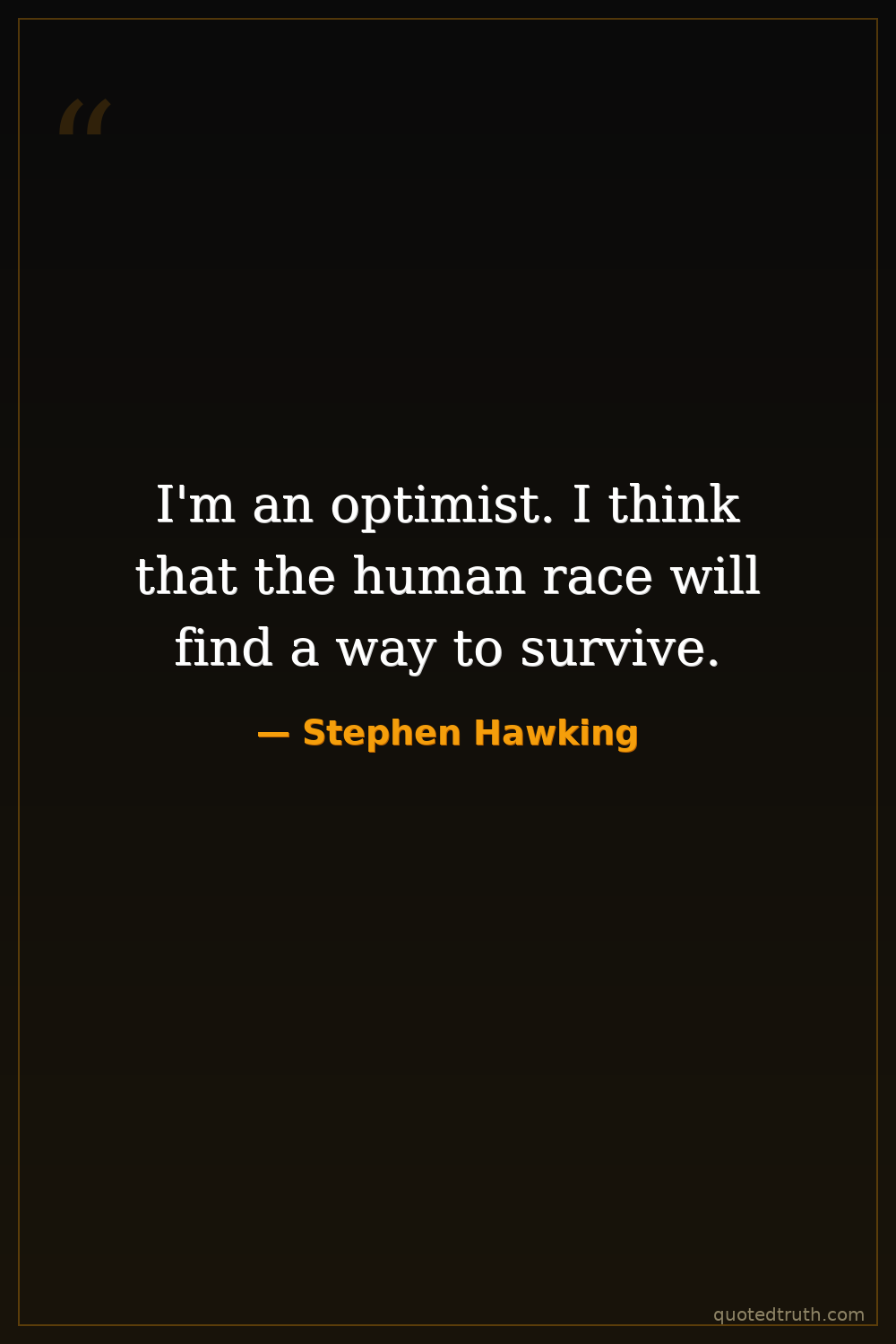 I'm an optimist. I think that the human race will find a way to survive.