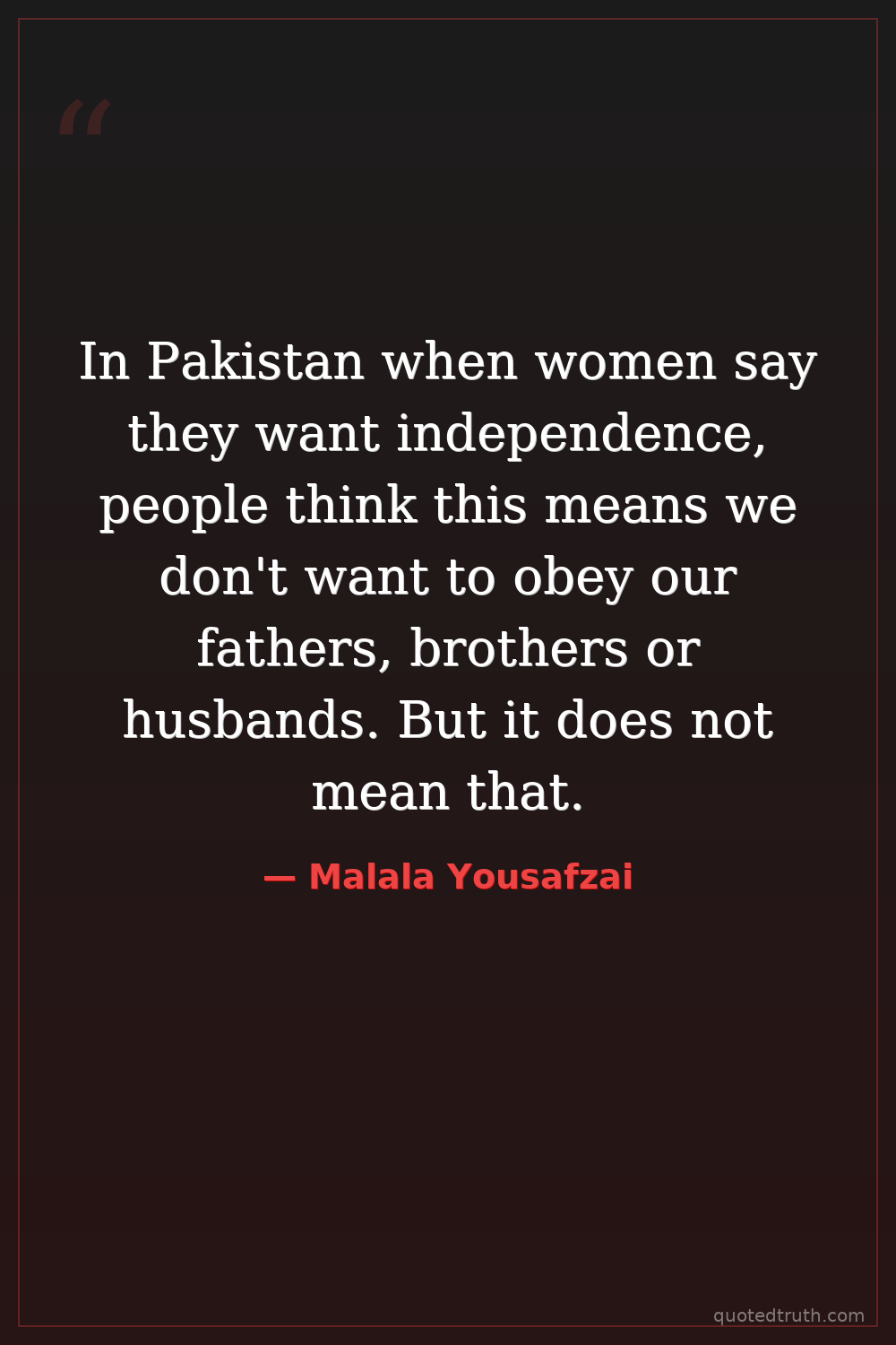 In Pakistan when women say they want independence, people think this means we don't want to obey our fathers, brothers or husbands. But it does not mean that.