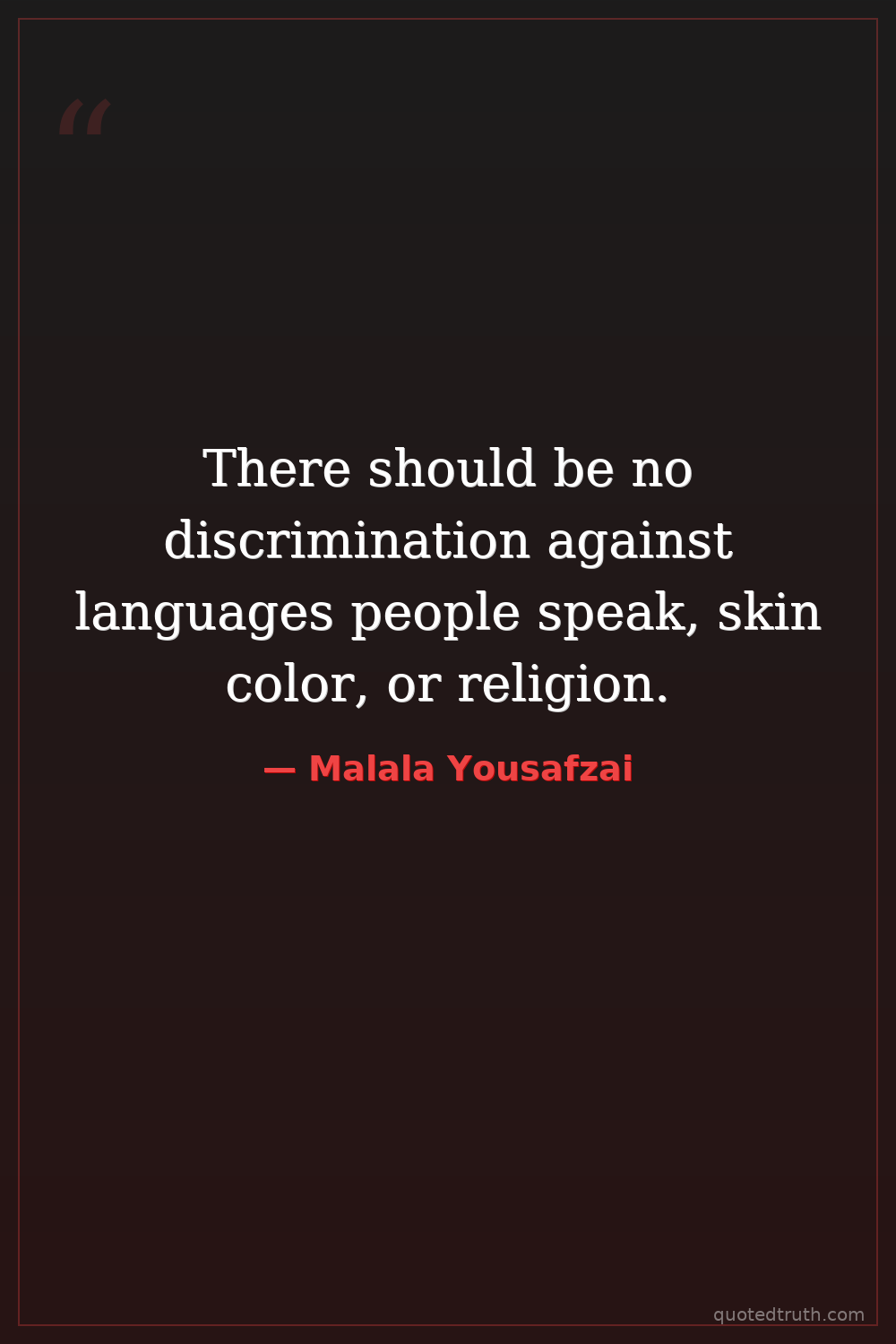 There should be no discrimination against languages people speak, skin color, or religion.