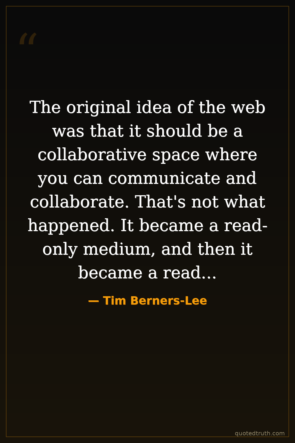 The original idea of the web was that it should be a collaborative space where you can communicate and collaborate. That's not what happened. It became a read-only medium, and then it became a read-write medium of just a few companies.