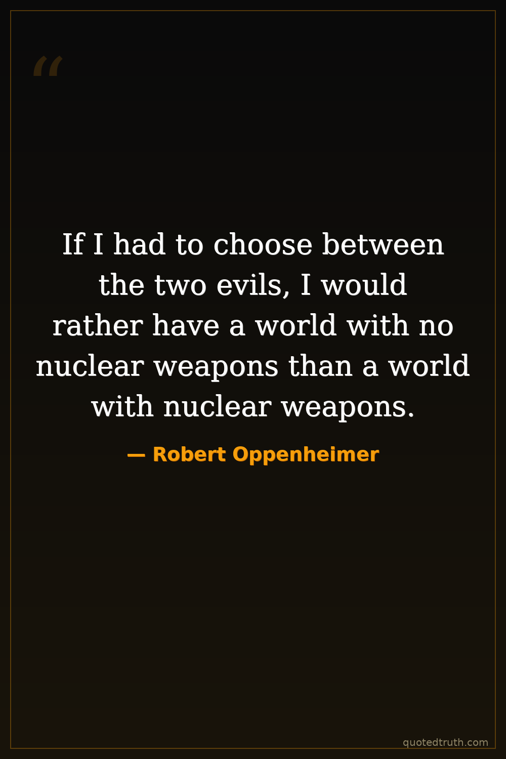 If I had to choose between the two evils, I would rather have a world with no nuclear weapons than a world with nuclear weapons.