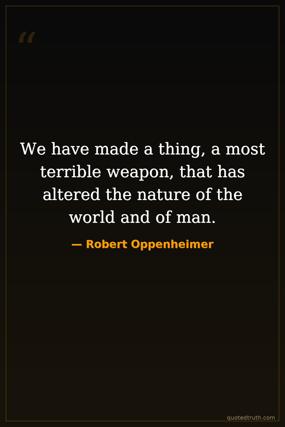 We have made a thing, a most terrible weapon, that has altered the nature of the world and of man.