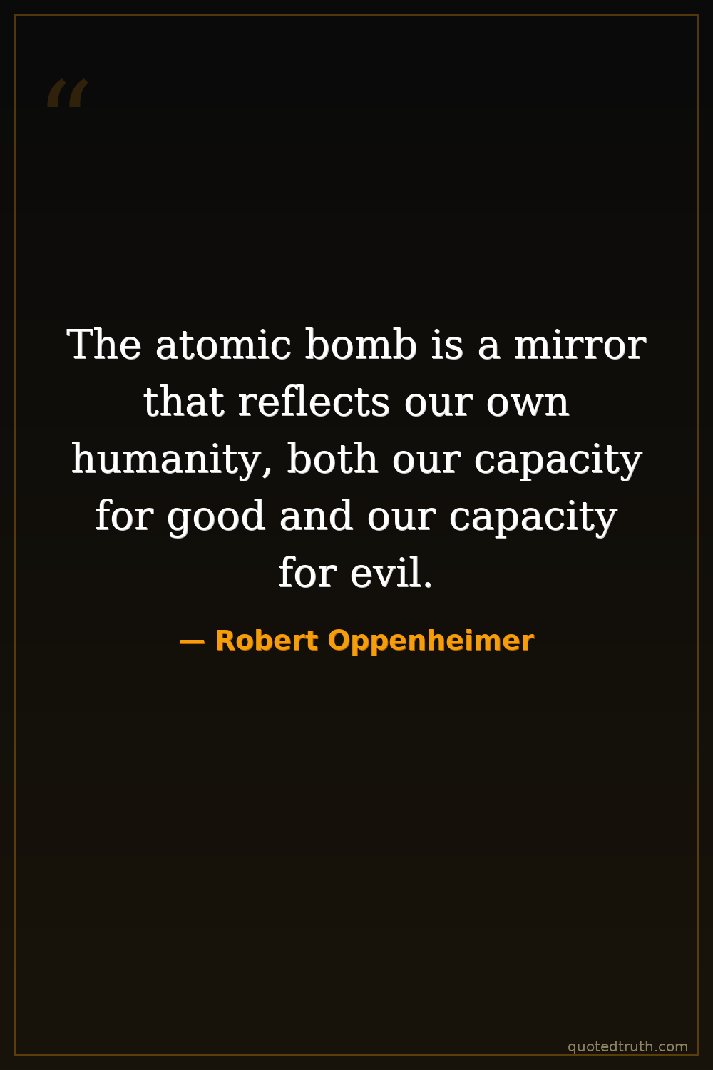 The atomic bomb is a mirror that reflects our own humanity, both our capacity for good and our capacity for evil.