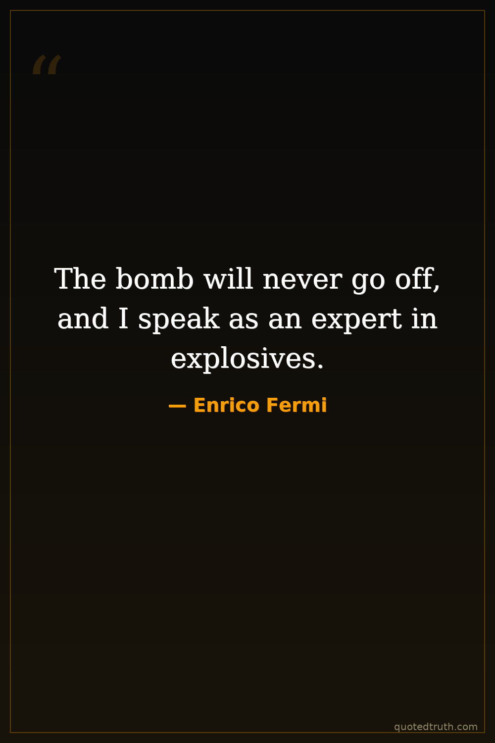 The bomb will never go off, and I speak as an expert in explosives.