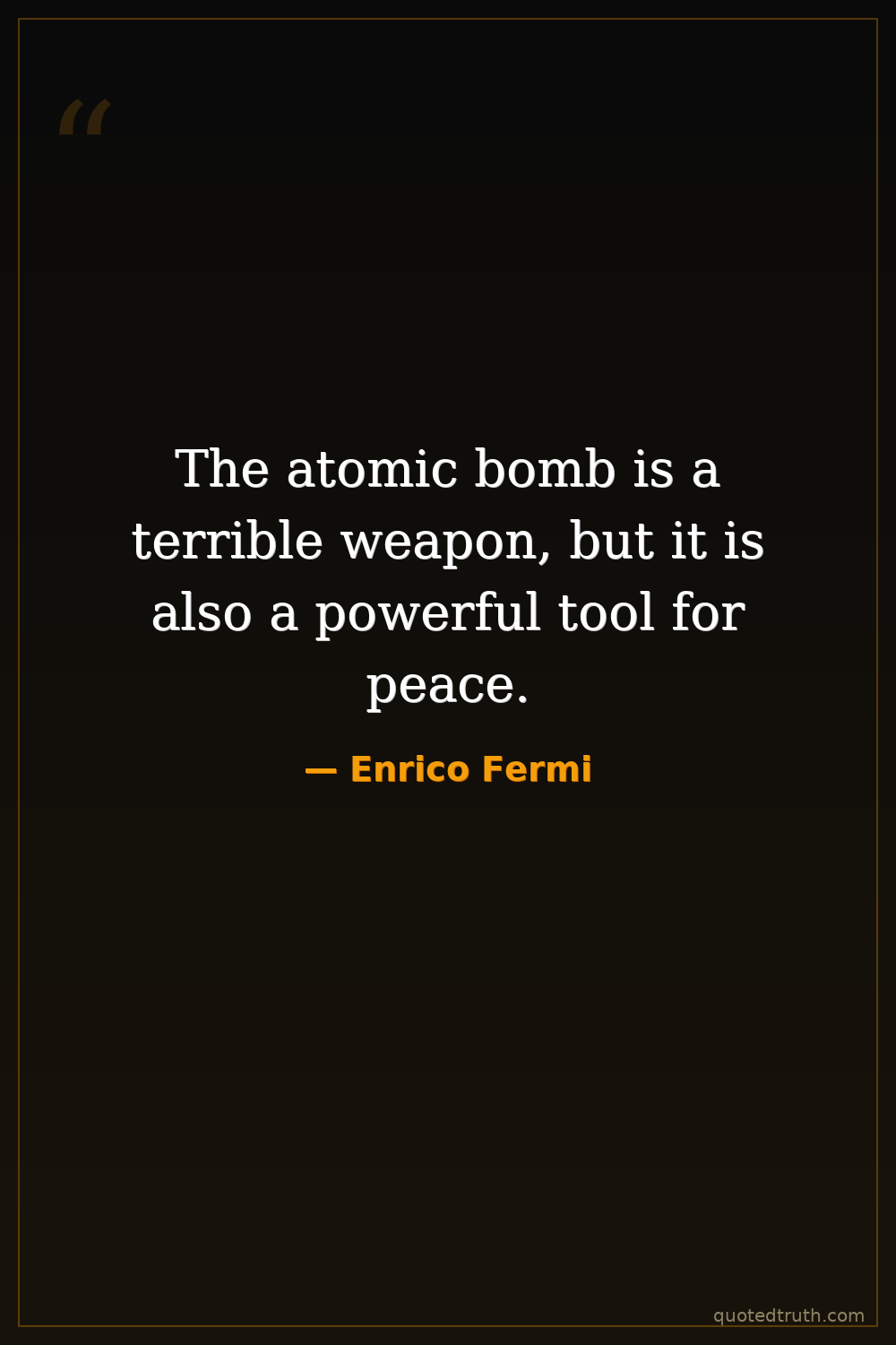 The atomic bomb is a terrible weapon, but it is also a powerful tool for peace.