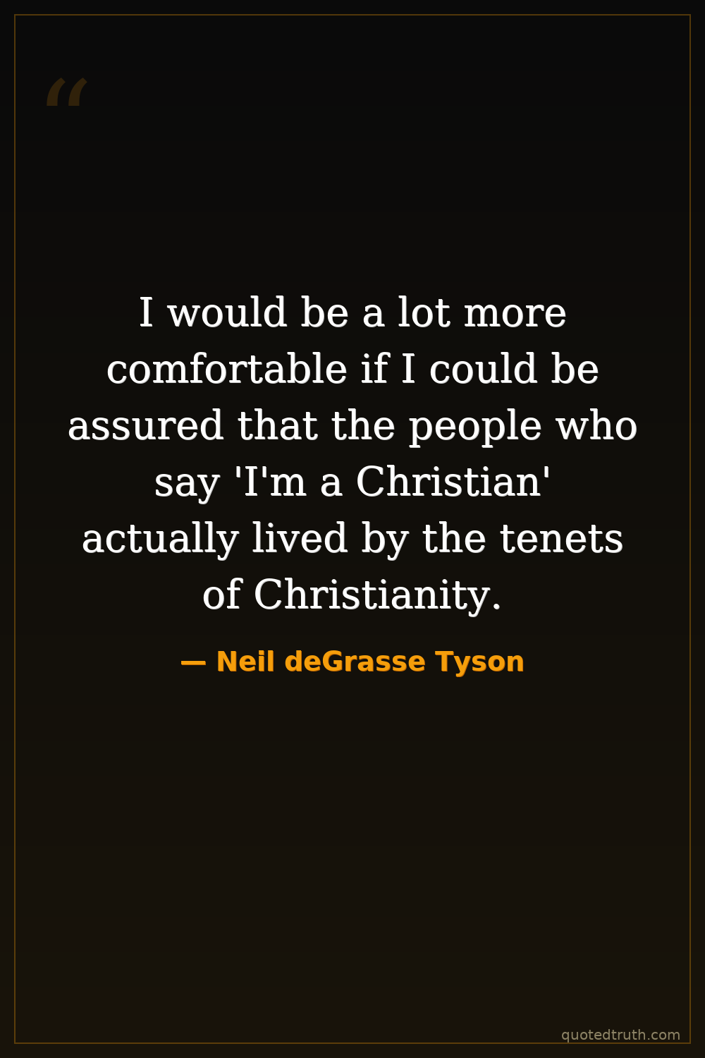I would be a lot more comfortable if I could be assured that the people who say 'I'm a Christian' actually lived by the tenets of Christianity.