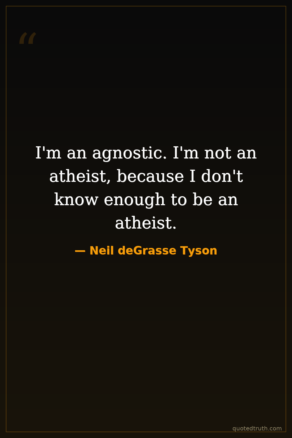 I'm an agnostic. I'm not an atheist, because I don't know enough to be an atheist.