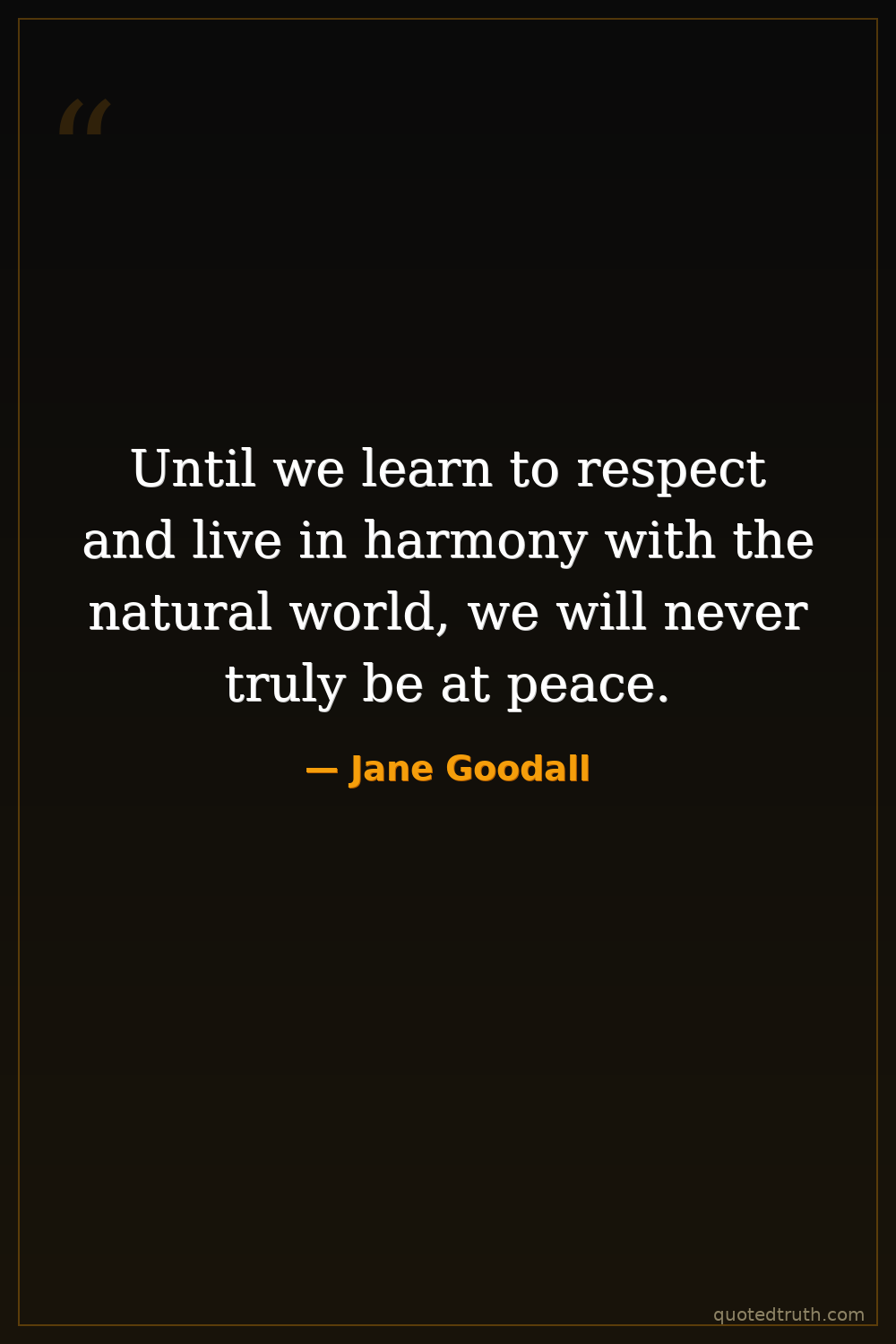 Until we learn to respect and live in harmony with the natural world, we will never truly be at peace.