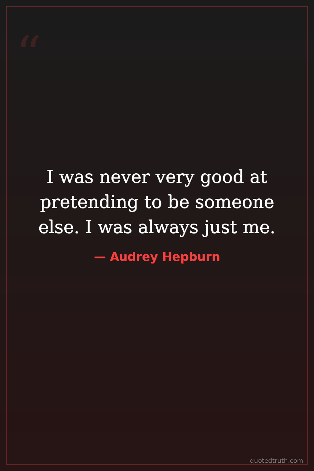 I was never very good at pretending to be someone else. I was always just me.