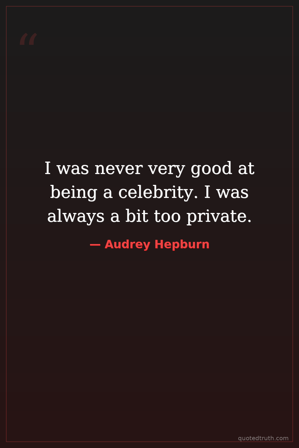 I was never very good at being a celebrity. I was always a bit too private.