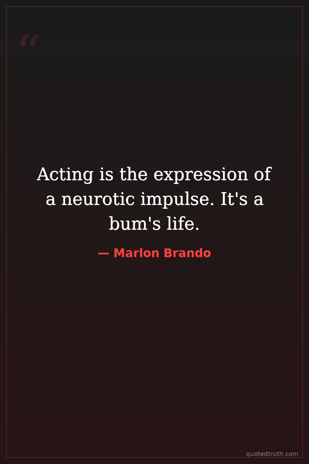 Acting is the expression of a neurotic impulse. It's a bum's life.