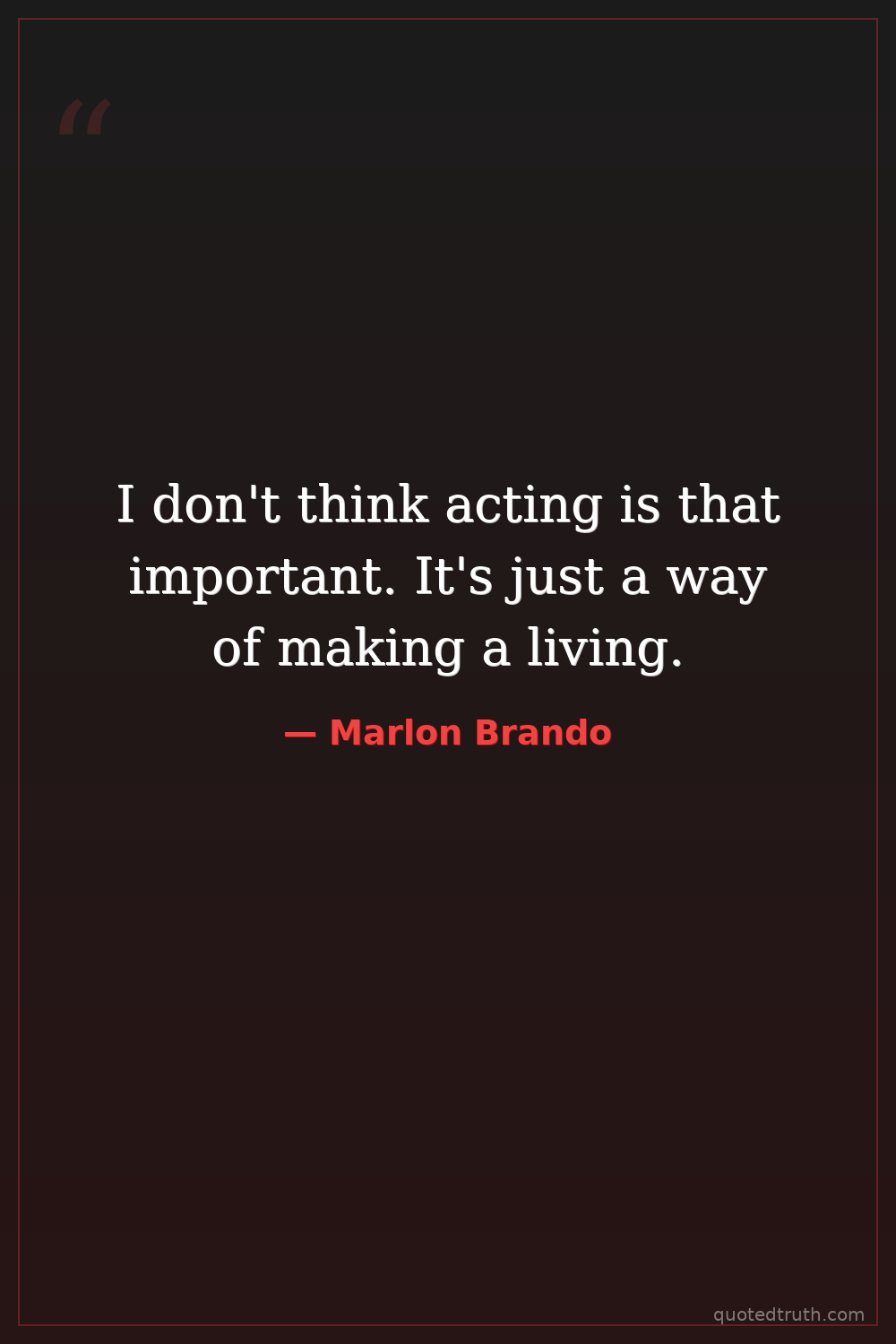 I don't think acting is that important. It's just a way of making a living.