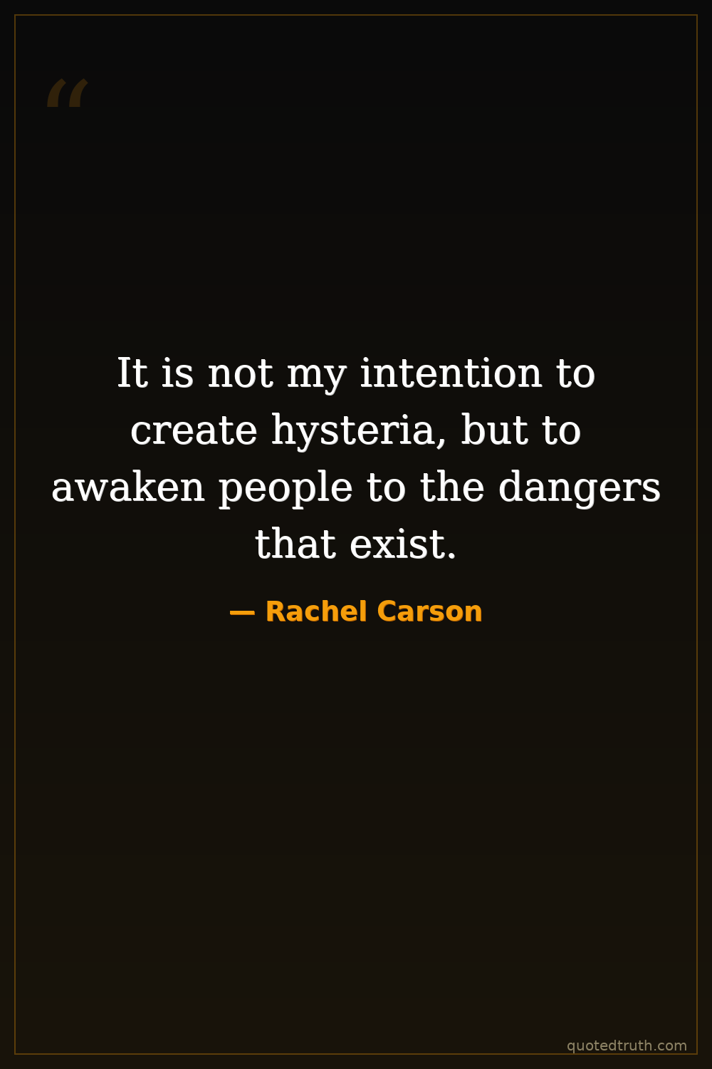 It is not my intention to create hysteria, but to awaken people to the dangers that exist.