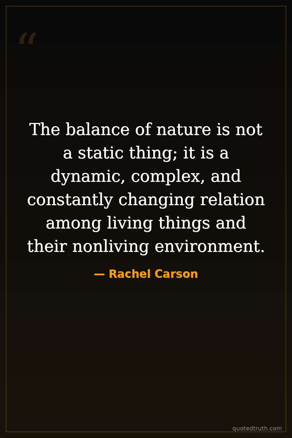 The balance of nature is not a static thing; it is a dynamic, complex, and constantly changing relation among living things and their nonliving environment.