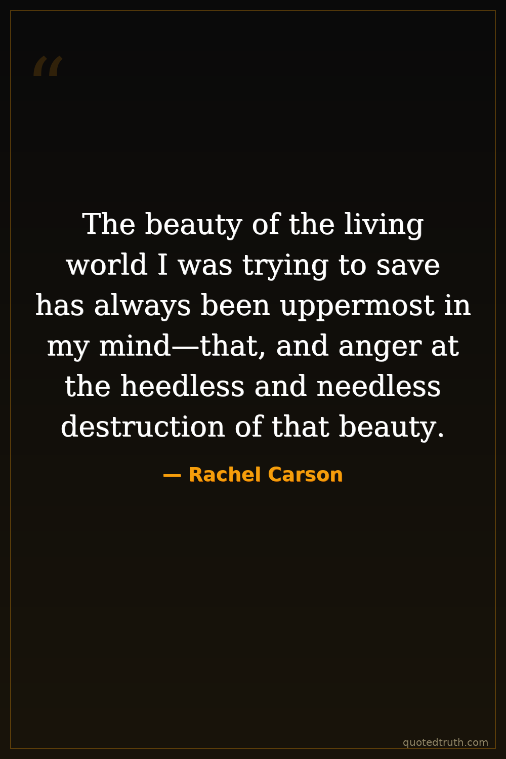 The beauty of the living world I was trying to save has always been uppermost in my mind—that, and anger at the heedless and needless destruction of that beauty.