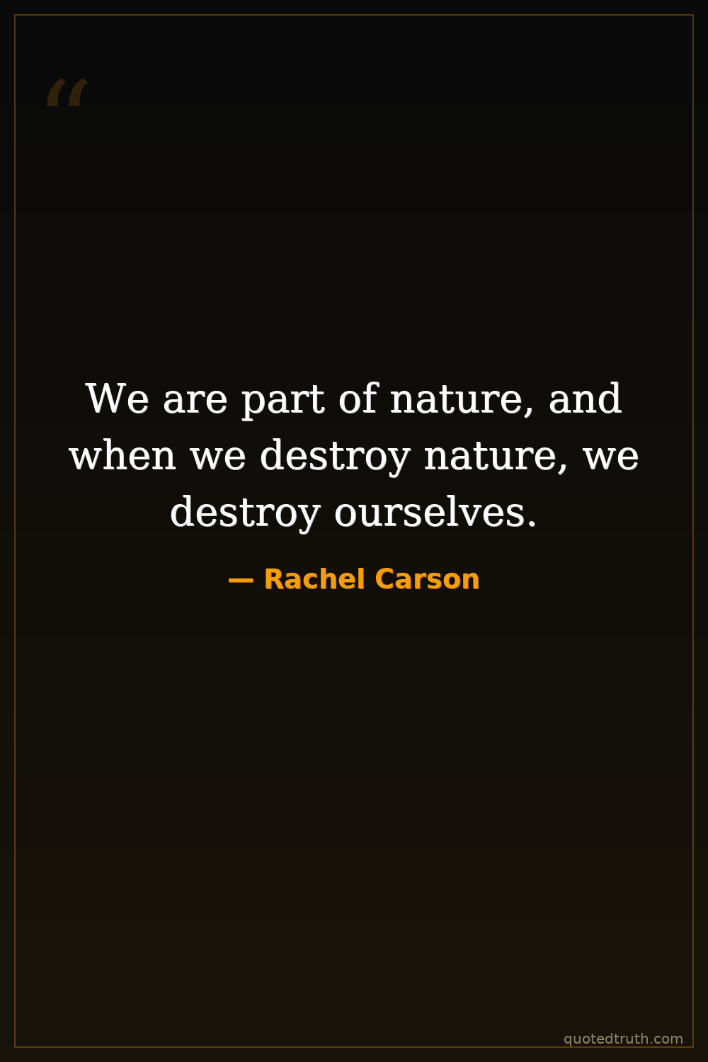 We are part of nature, and when we destroy nature, we destroy ourselves.