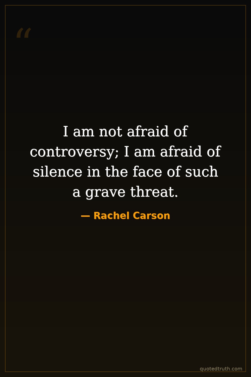 I am not afraid of controversy; I am afraid of silence in the face of such a grave threat.