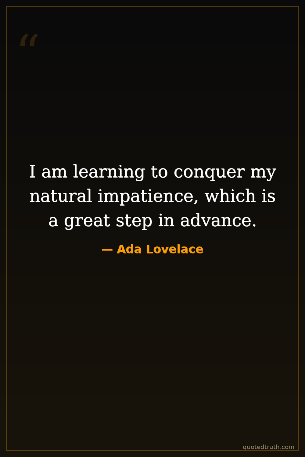 I am learning to conquer my natural impatience, which is a great step in advance.