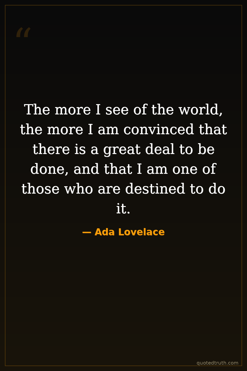 The more I see of the world, the more I am convinced that there is a great deal to be done, and that I am one of those who are destined to do it.