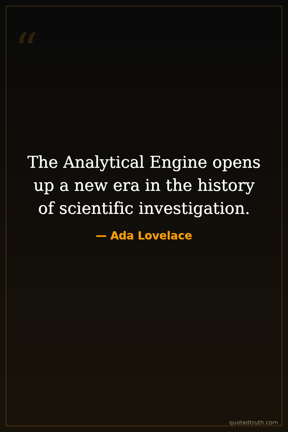 The Analytical Engine opens up a new era in the history of scientific investigation.