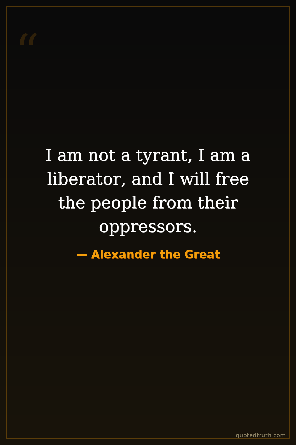 I am not a tyrant, I am a liberator, and I will free the people from their oppressors.
