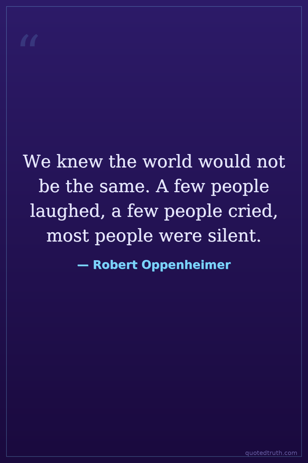We knew the world would not be the same. A few people laughed, a few people cried, most people were silent.