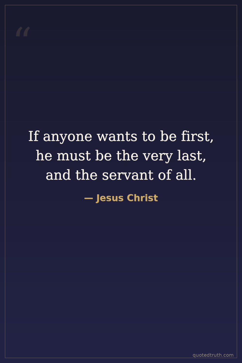 If anyone wants to be first, he must be the very last, and the servant of all.
