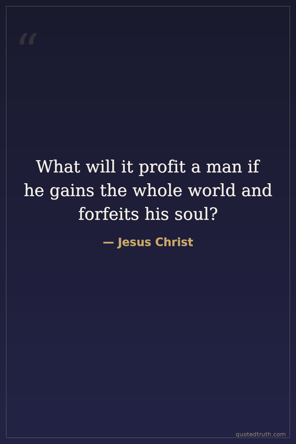 What will it profit a man if he gains the whole world and forfeits his soul?
