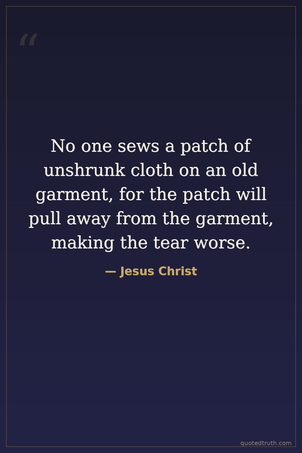 No one sews a patch of unshrunk cloth on an old garment, for the patch will pull away from the garment, making the tear worse.