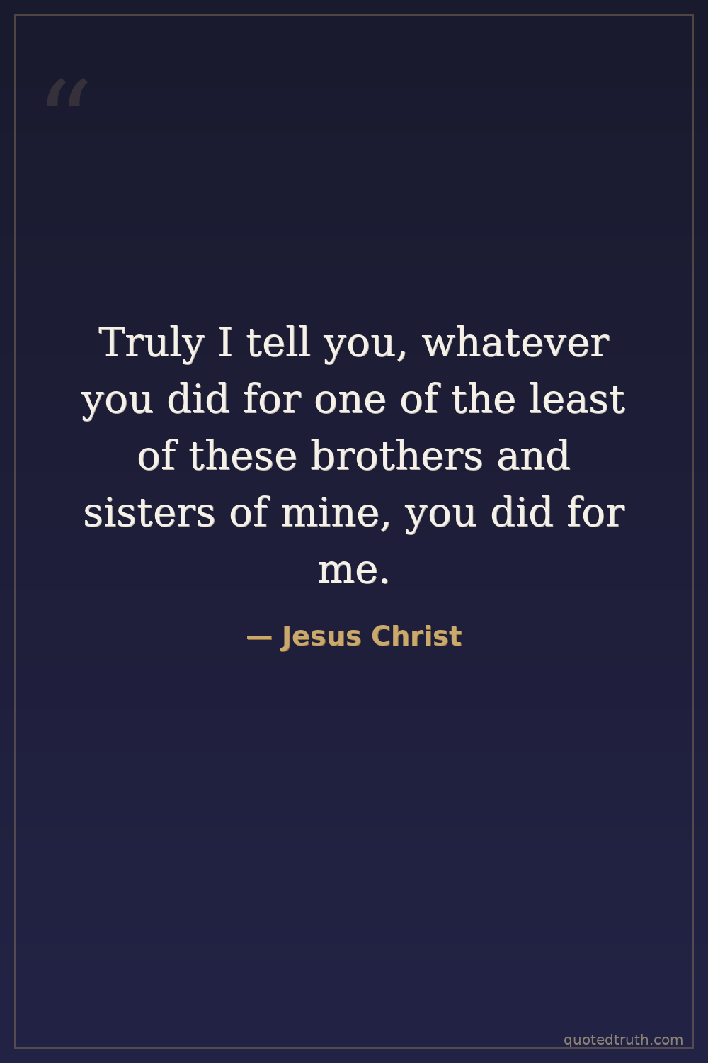 From the Parable of the Sheep and the Goats (Matthew 25:40)