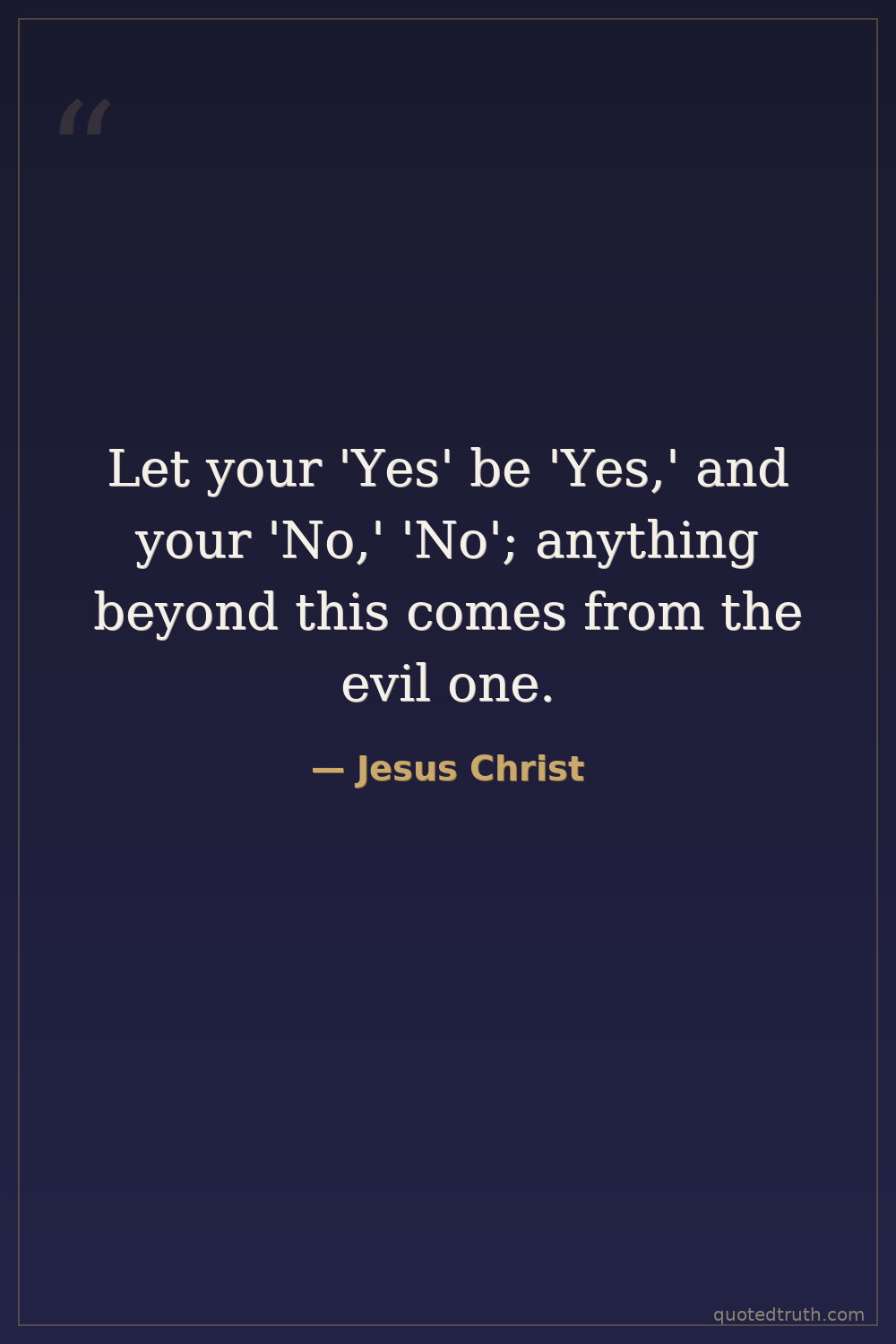 Let your 'Yes' be 'Yes,' and your 'No,' 'No'; anything beyond this comes from the evil one.