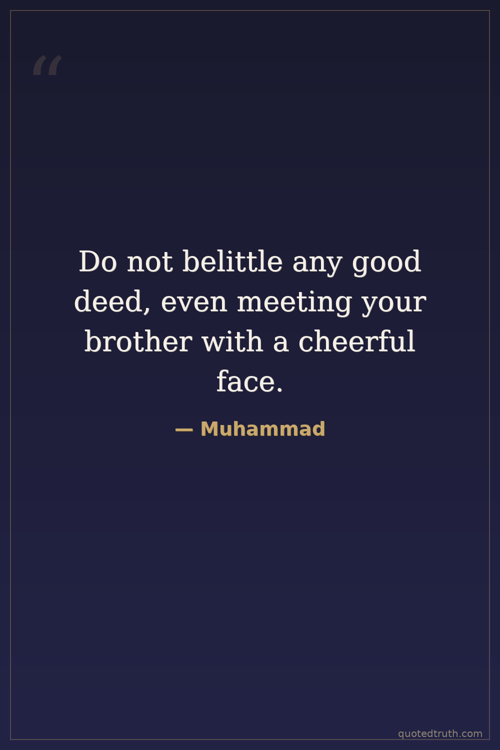Do not belittle any good deed, even meeting your brother with a cheerful face.