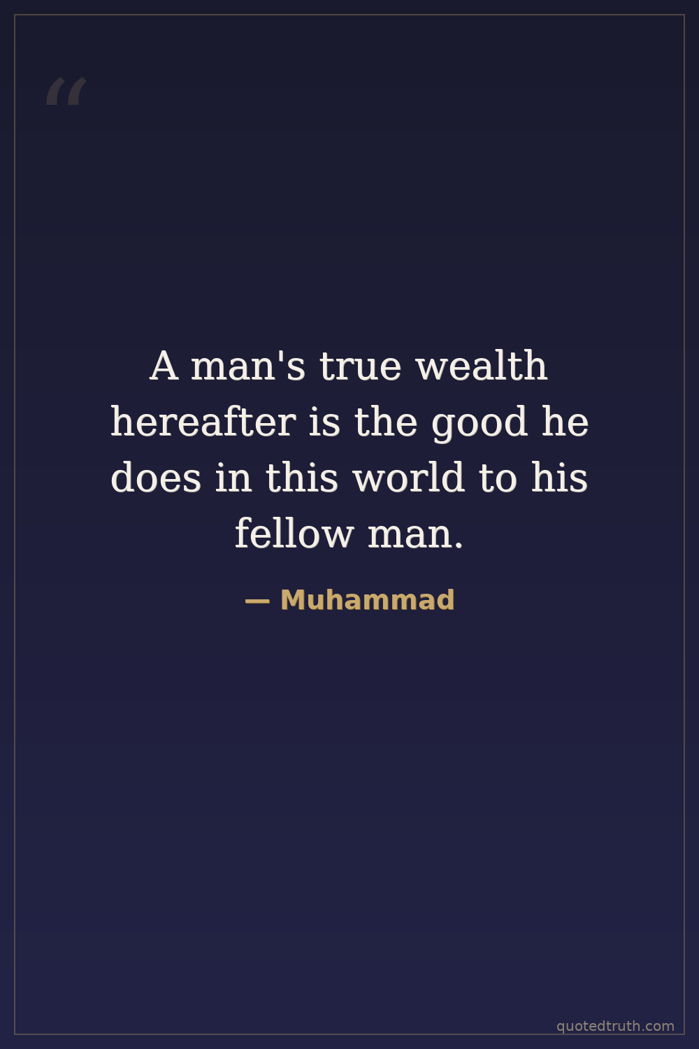 A man's true wealth hereafter is the good he does in this world to his fellow man.