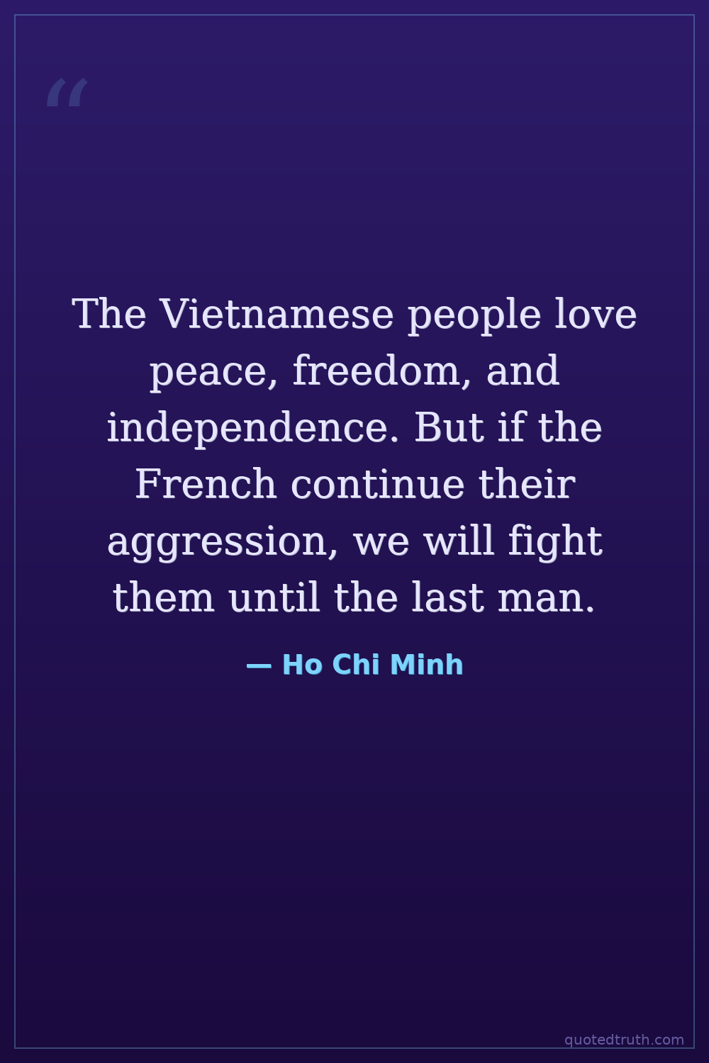 The Vietnamese people love peace, freedom, and independence. But if the French continue their aggression, we will fight them until the last man.
