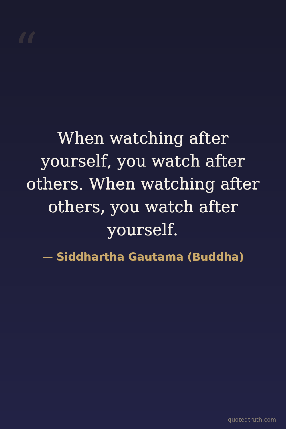 When watching after yourself, you watch after others. When watching after others, you watch after yourself.