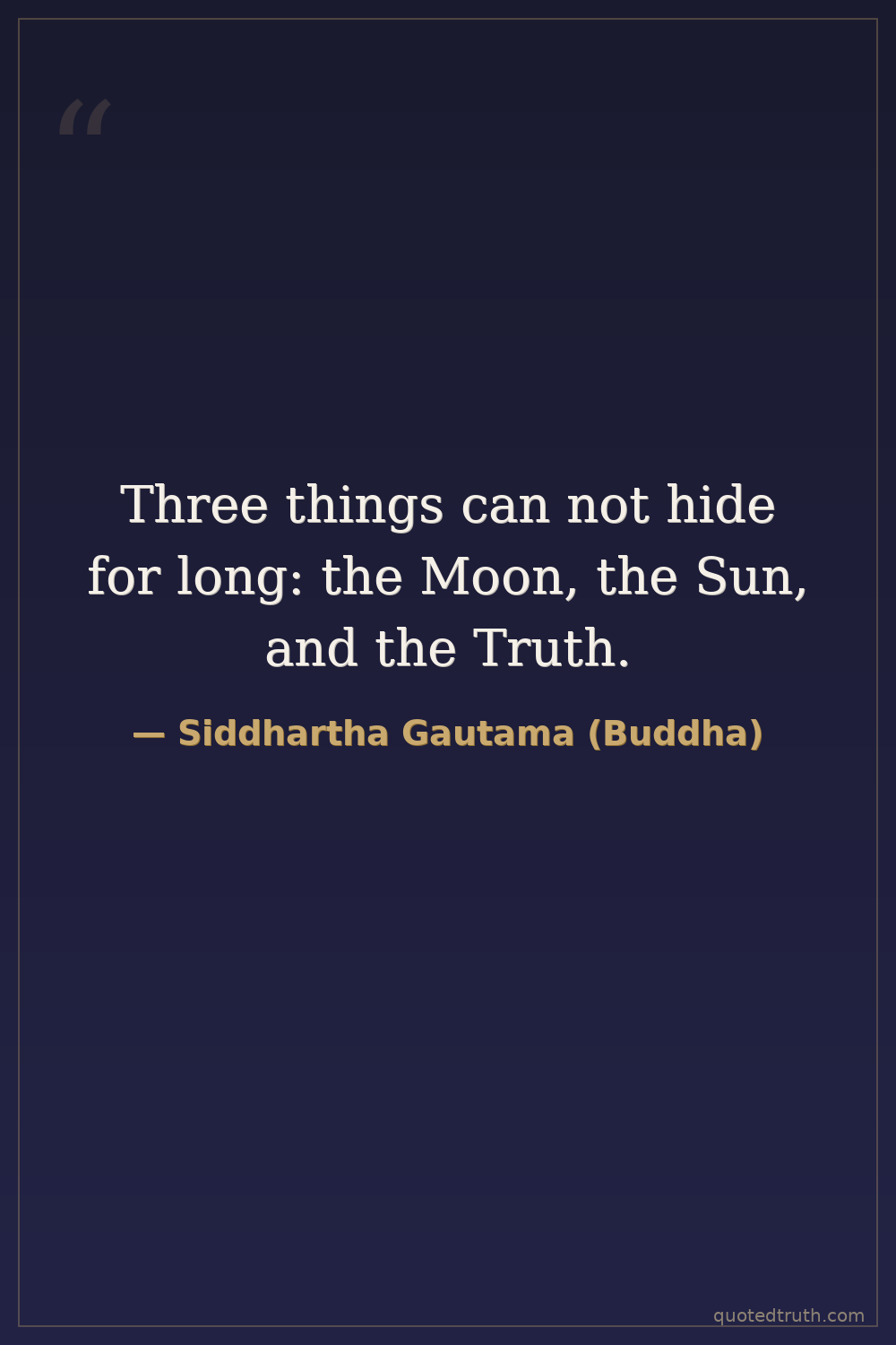 Three things can not hide for long: the Moon, the Sun, and the Truth.