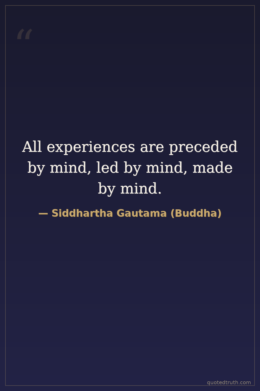 All experiences are preceded by mind, led by mind, made by mind.