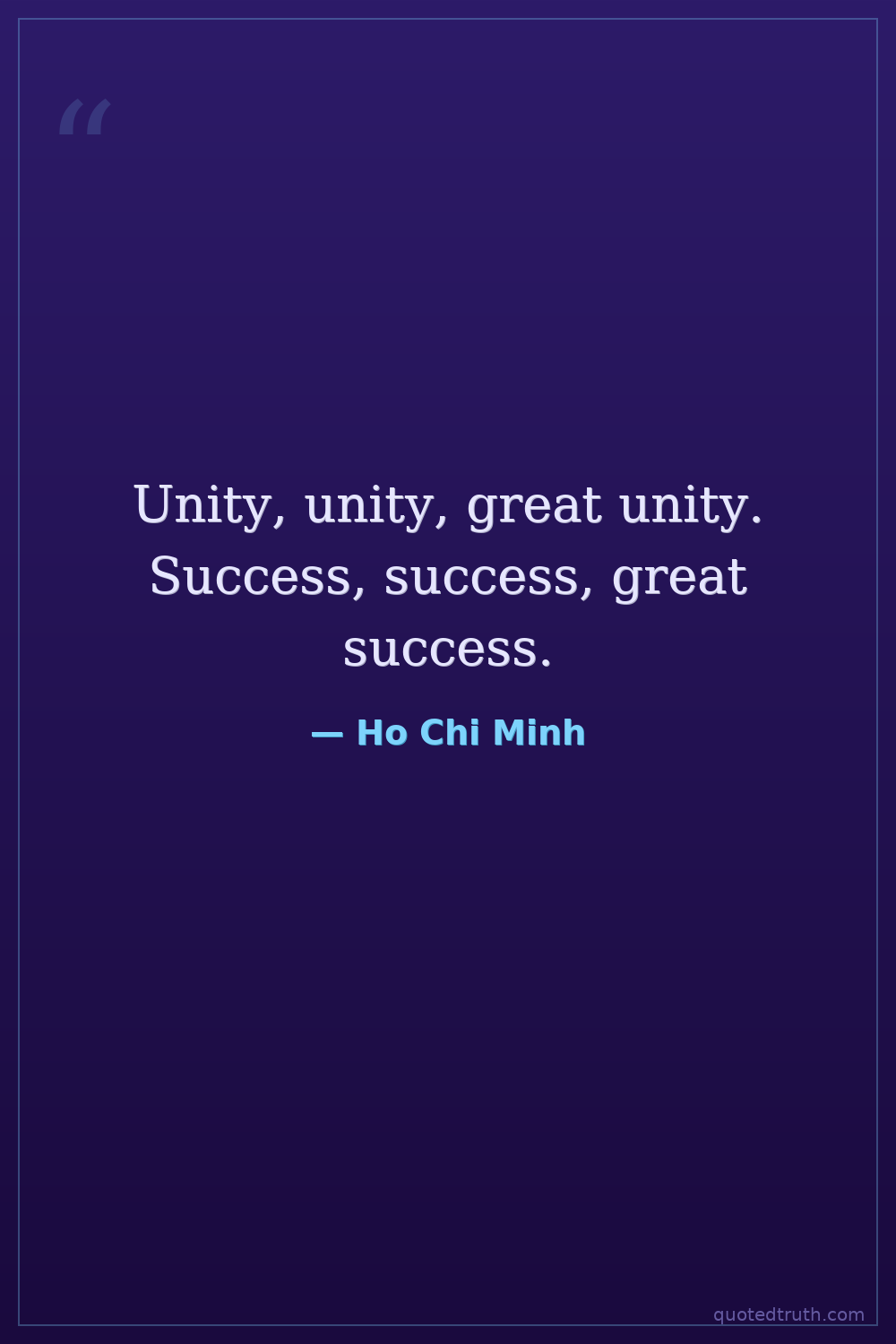 Unity, unity, great unity. Success, success, great success.