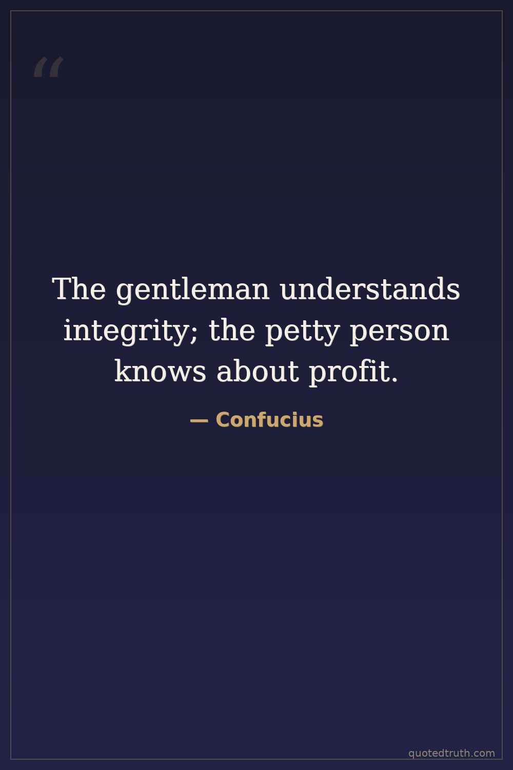 The gentleman understands integrity; the petty person knows about profit.