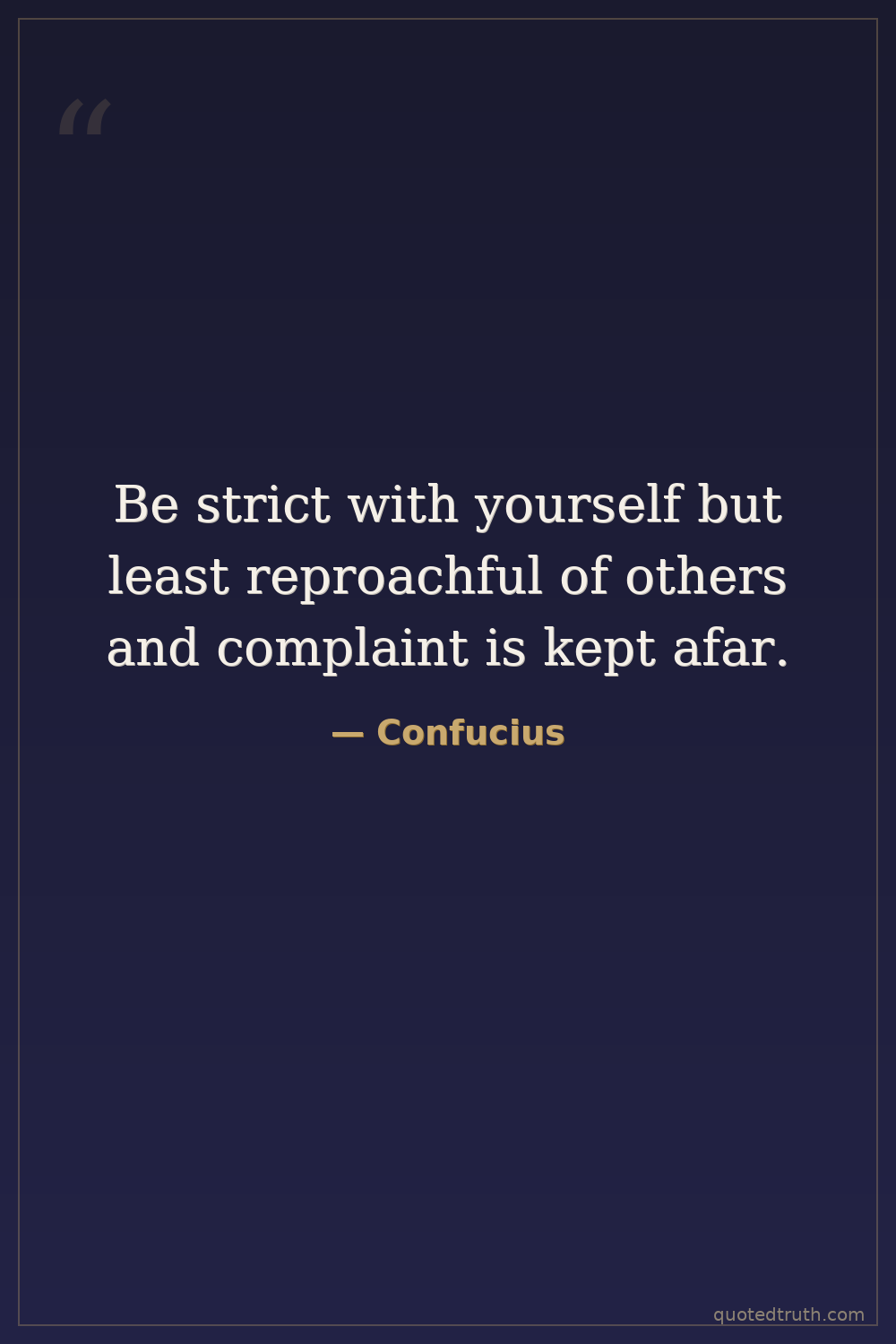 Be strict with yourself but least reproachful of others and complaint is kept afar.