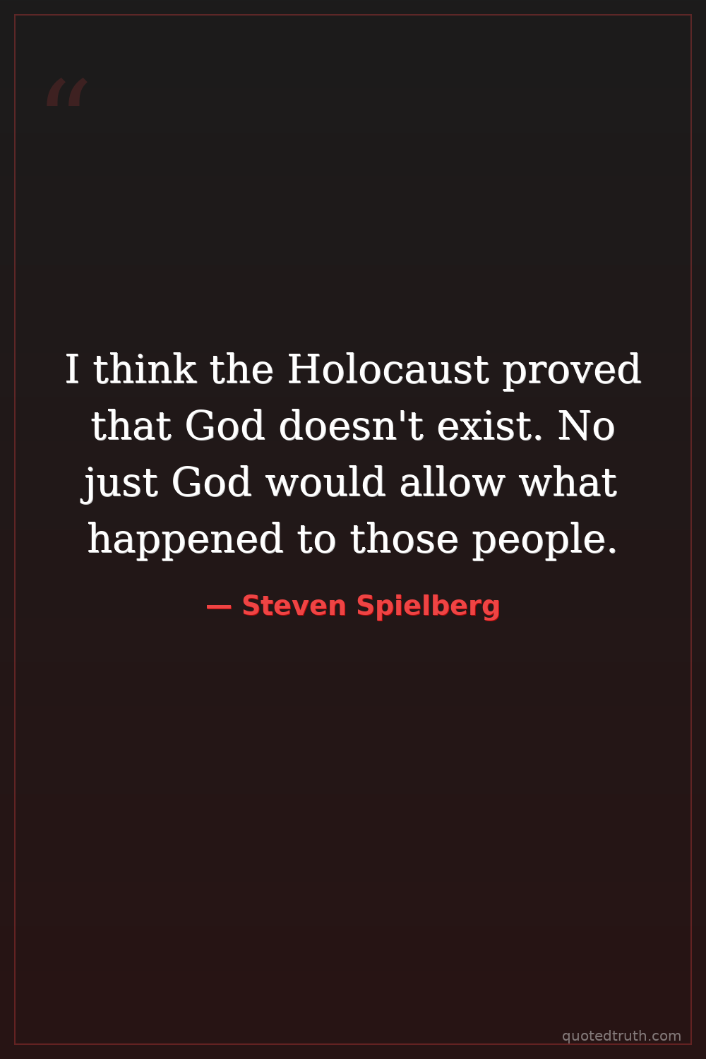 I think the Holocaust proved that God doesn't exist. No just God would allow what happened to those people.