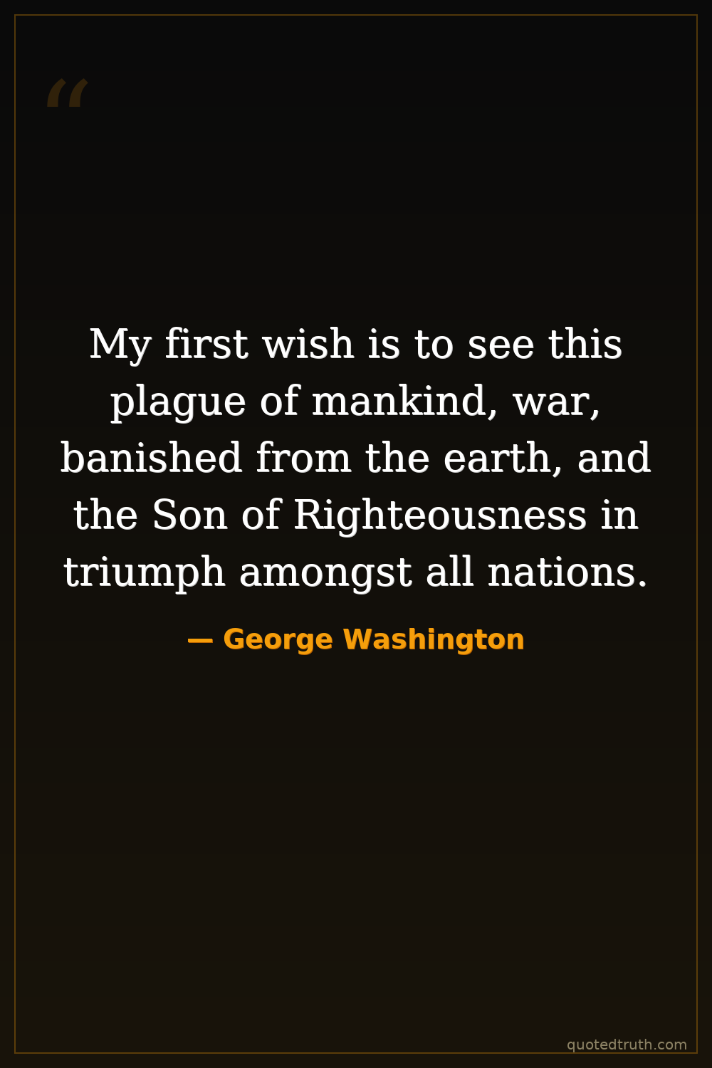 My first wish is to see this plague of mankind, war, banished from the earth, and the Son of Righteousness in triumph amongst all nations.