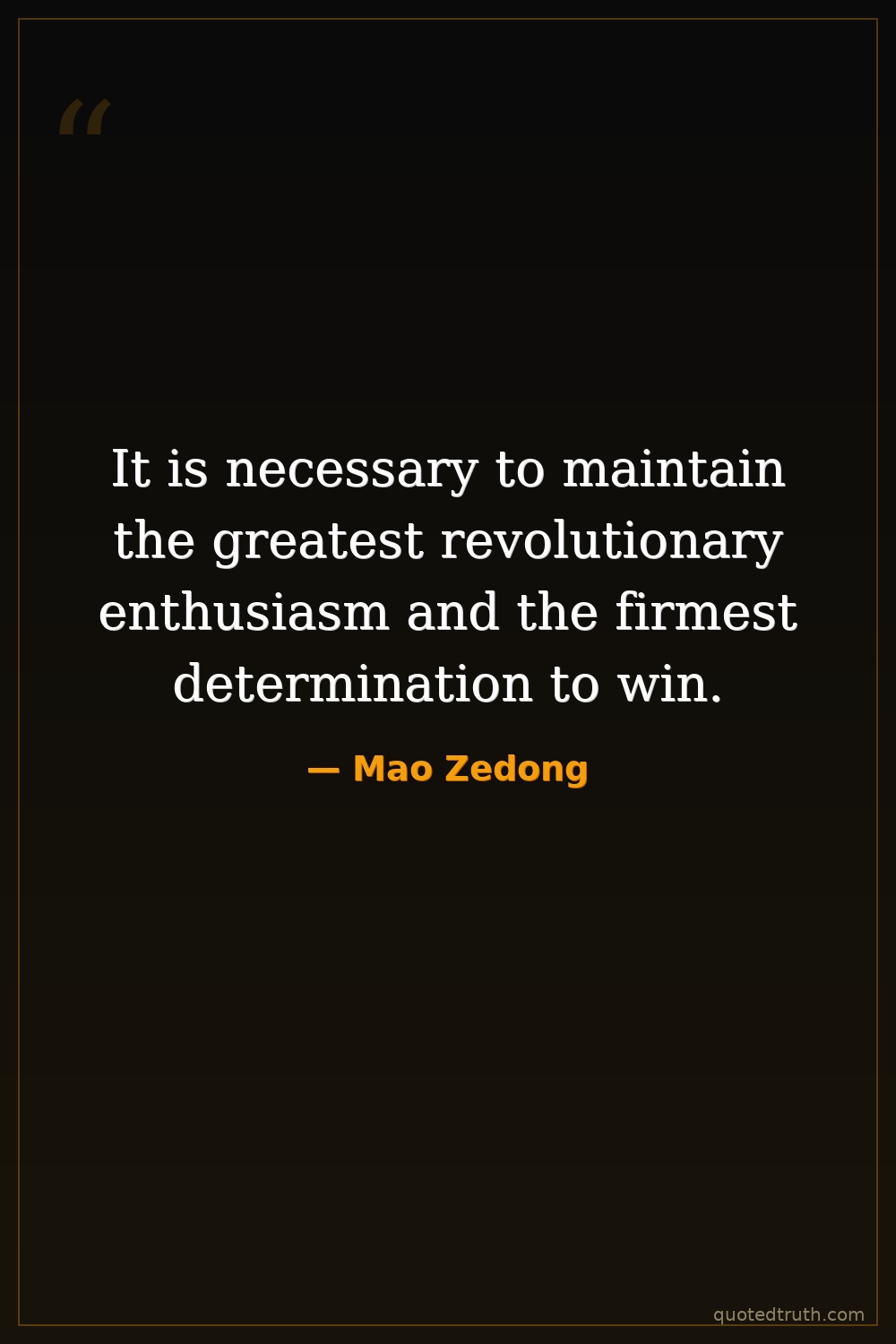 It is necessary to maintain the greatest revolutionary enthusiasm and the firmest determination to win.