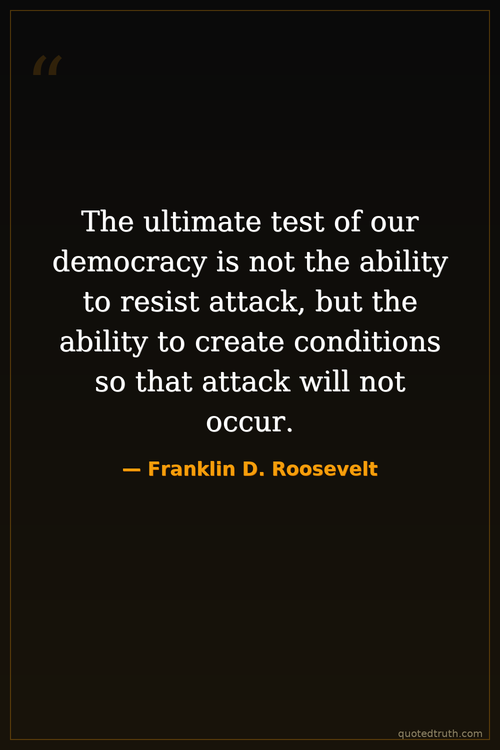 The ultimate test of our democracy is not the ability to resist attack, but the ability to create conditions so that attack will not occur.