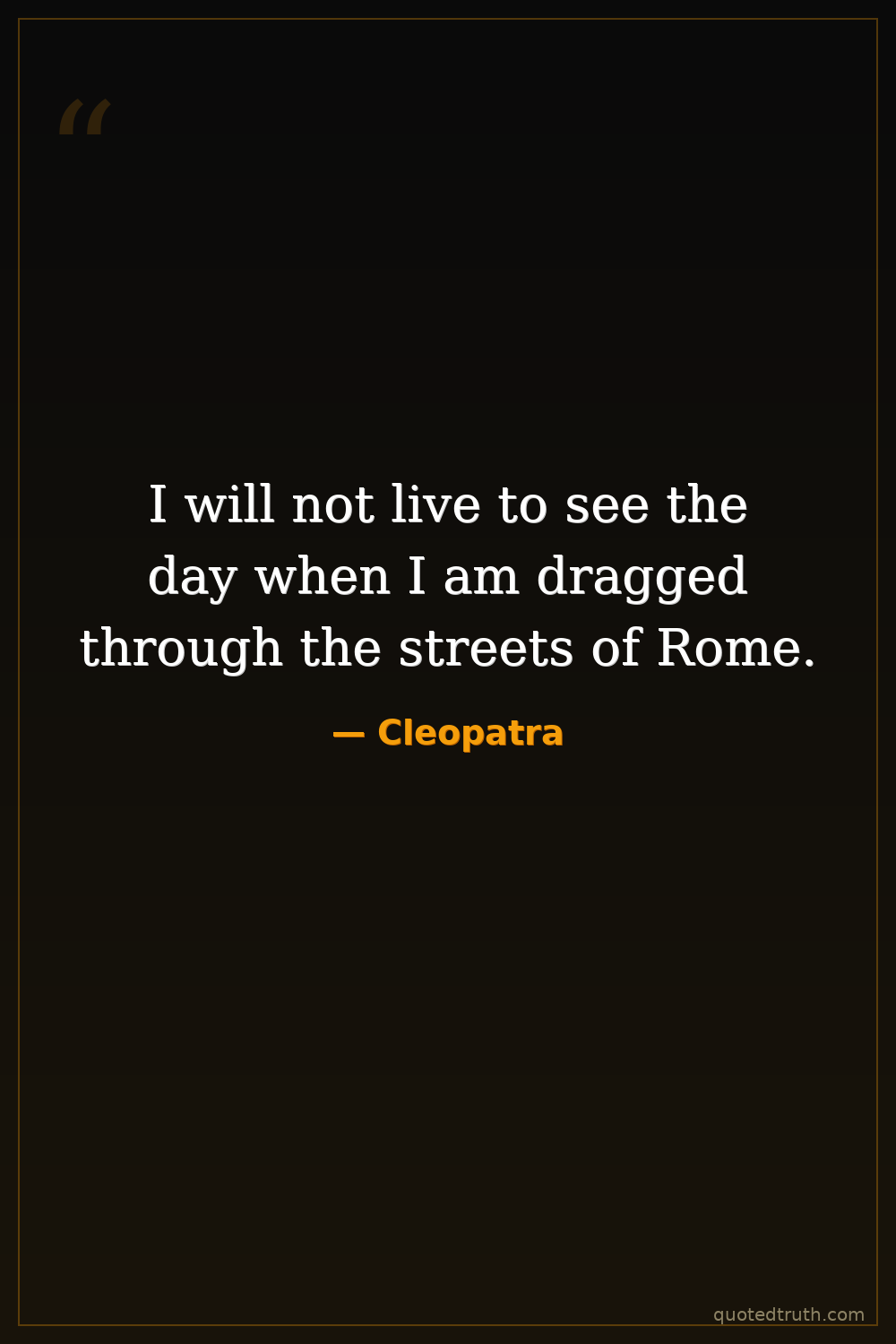 I will not live to see the day when I am dragged through the streets of Rome.