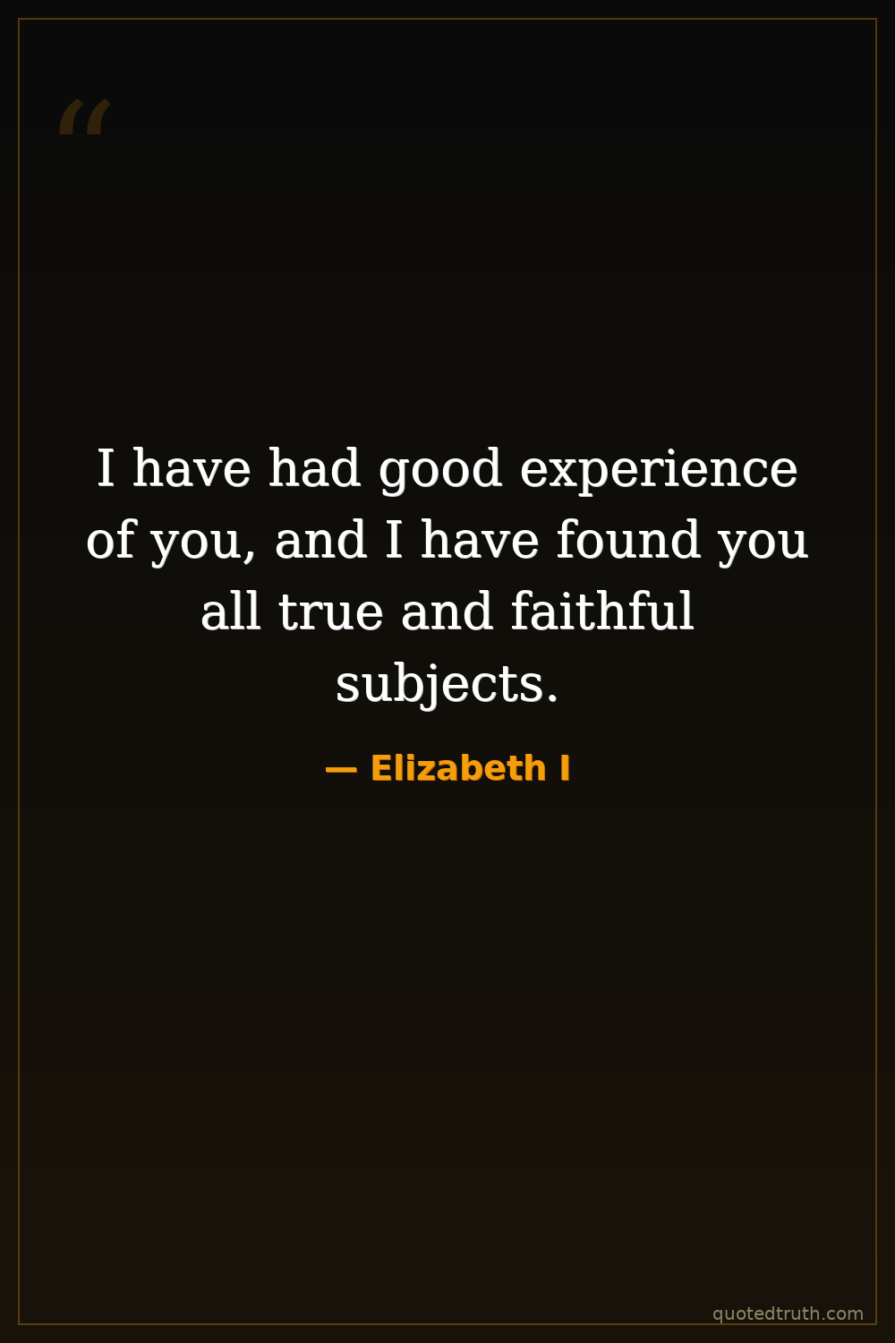 I have had good experience of you, and I have found you all true and faithful subjects.